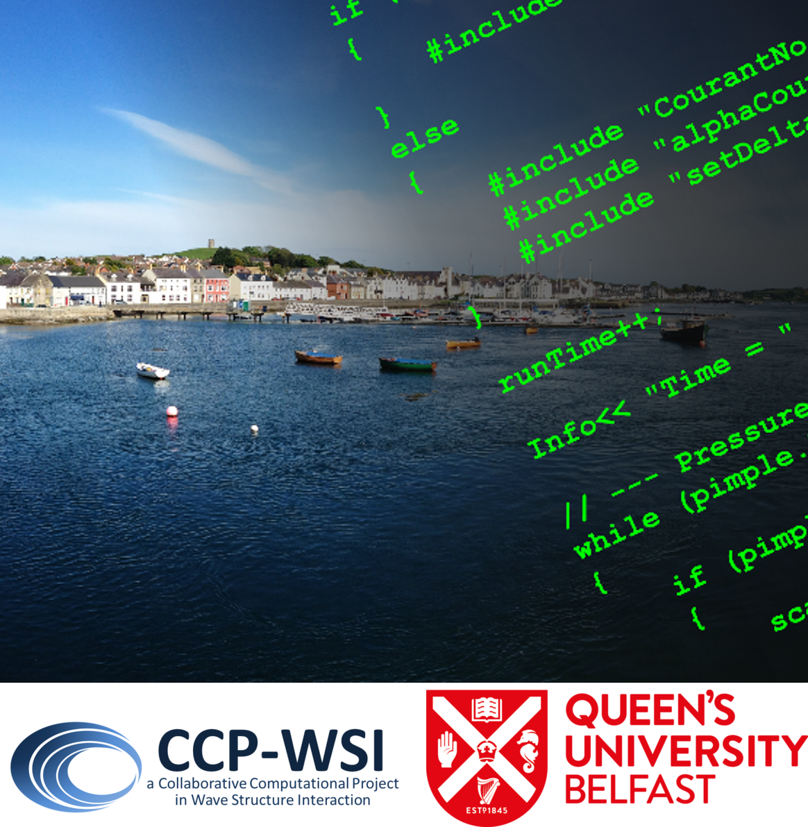 Set in the idyllic location of Portaferry, Northern Ireland, the 1st CCP-WSI Hackathon is a residential unconference, in collaboration with Queen’s University Belfast, in which selected members of the WSI community work together and share ideas to develop specific WSI software within the CCP-WSI Code Repository using the OpenFOAM code-base. The event is supported by the UK Fluids Network via the Special Interest Group in Wave Structure Interaction (SIG-WSI) and as well as generating high-quality, open-source and community-driven software, the CCP-WSI Hackathon aims to reduce the duplication of effort by bringing members of the WSI community together to work collaboratively on shared WSI problems. The code developments made will be professionally-software engineered and made publicly available, enabling easy and continual expansion of the ideas initiated at the event. Participants of the 1st CCP-WSI Hackathon will receive advanced, targeted training in WSI software development, from experts in the field, and will have an unparalleled opportunity to produce research outputs and establish collaborations with colleagues from the wider WSI community. Furthermore, participants of the 1st CCP-WSI Hackathon will be invited to be named contributors of the 1st CCP-WSI Code Release.